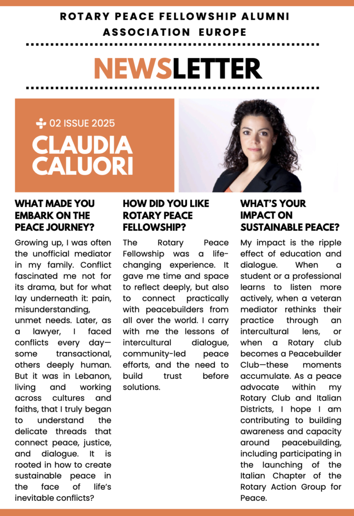 We’re excited to share the latest newsletter from the Rotary Peace Fellowship Alumni Association – Europe Chapter!